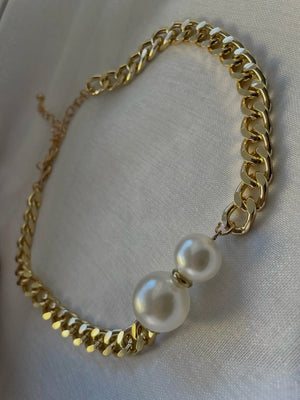 Cuban link design pairs with the imitation pearl pendant to balance rugged and refined. Use it to level up a tee and jacket or to add edge to a button-down for evening plans.
